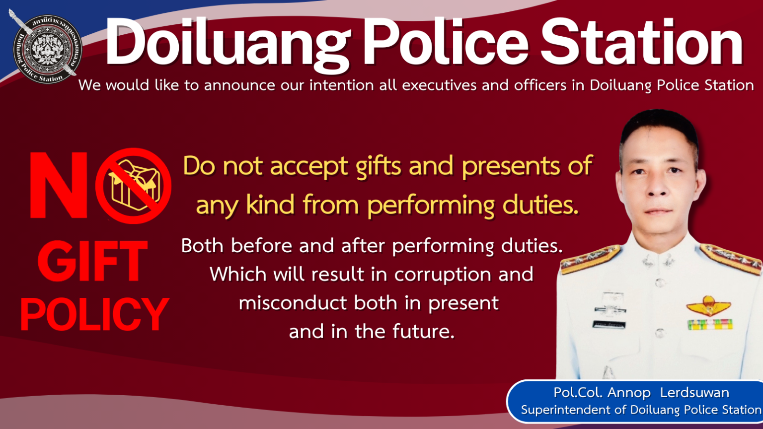 เมื่อ วันที่ 23 มีนาคม 2568 สถานีตำรวจภูธรดอยหลวง ได้ดำเนินกิจกรรมต่อต้านการทุจริต และนโยบายต่อต้านก