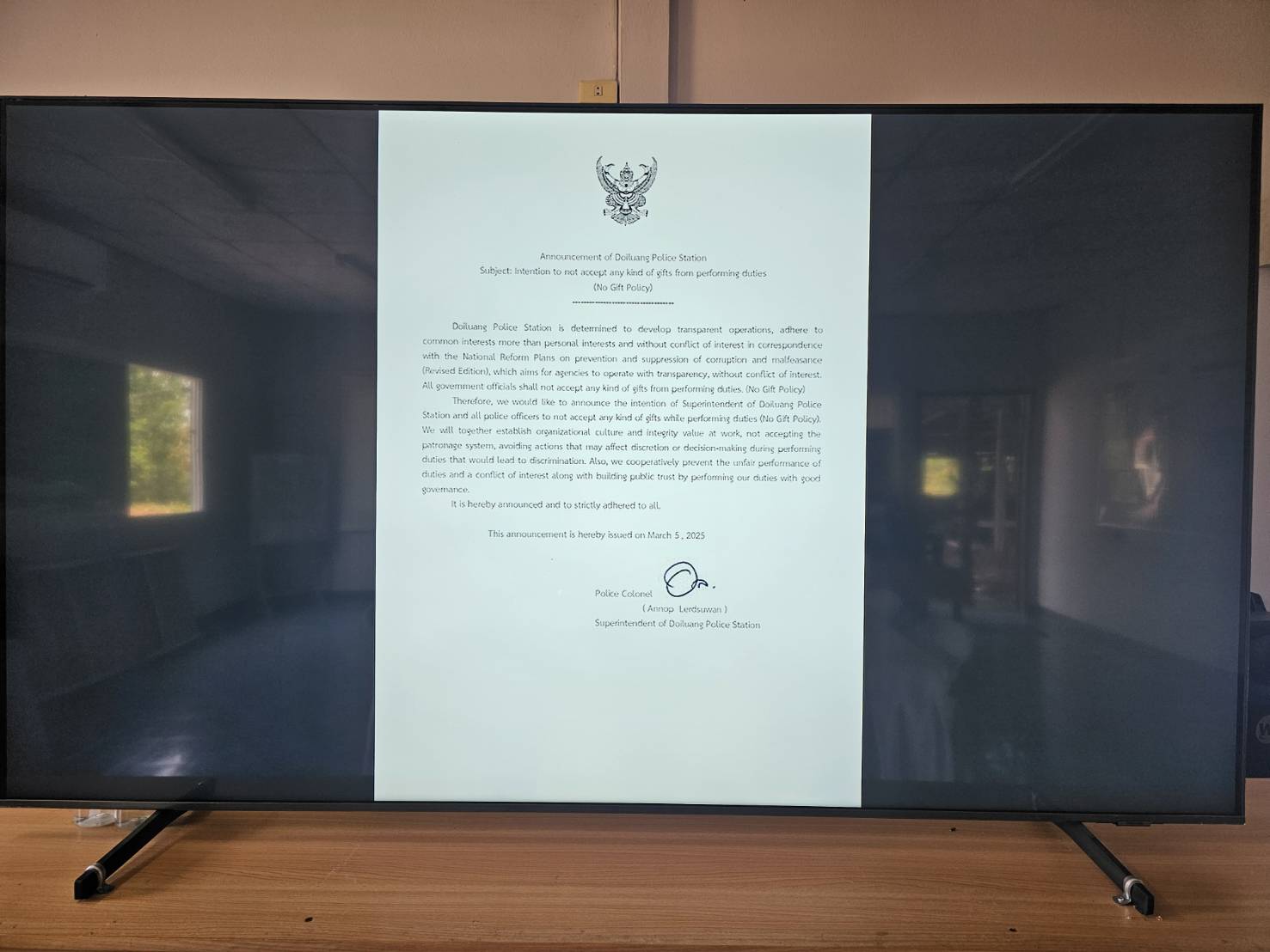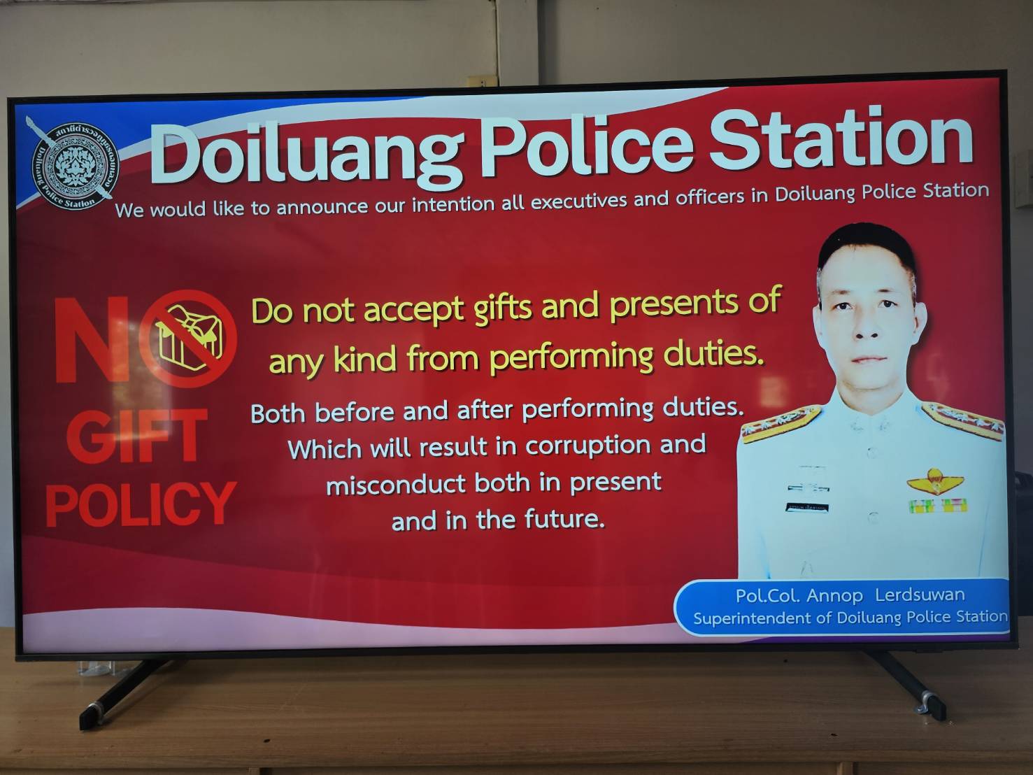 เมื่อ วันที่ 23 มีนาคม 2568 สถานีตำรวจภูธรดอยหลวง ได้ดำเนินกิจกรรมต่อต้านการทุจริต และนโยบายต่อต้านการรับสินบน(Anti-Bribery Policy) ณ ห้องประชุมสถานีตำรวจภูธรดอยหลวง โดยมีพันตำรวจเอก อรรณพ เลิศสุวรรณ ผู้กำกับการสถานีตำรวจภูธรดอยหลวง เป็นประธานการประชุม ซึ่งการประชุมดังกล่าว