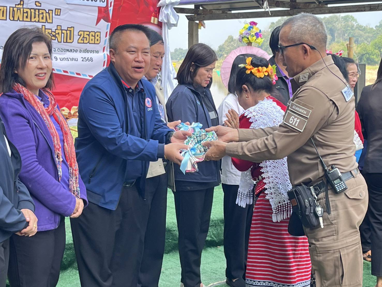 – 9 ม.ค.2568 เวลา 10.00 น. เจ้าหน้าที่ตำรวจชุดมวลชนสัมพันธ์และจิตอาสา สภ.ดอยหลวง ได้ร่วมกับสำนักงานส่งเสริมการเรียนรู้ประจำจังหวัดเชียงราย ในโครงการ ” สกร.เชียงราย ส่งความสุขเพื่อน้อง2568″ มอบของขวัญให้กับเด็ก เยาวชน ประชาชน ผู้สูงอายุและผู้ยากไร้ ณ บ้านหนองกล้วย ม.4 ต.หนองป่าก่อ อ.ดอยหลวง จว.เชียงราย