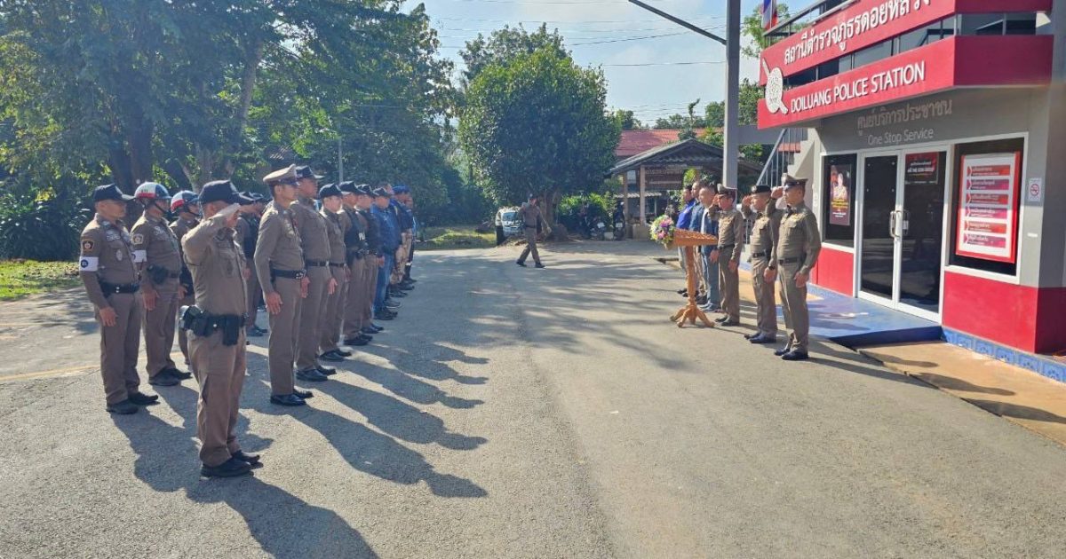 วันอังคารที่ 24 ธ.ค.67 โดยมี พ.ต.อ.อรรณพ เลิศสุวรรณ ผกก.สภ.ดอยหลวง เป็นประธาน ได้ร่วมกับภาคีเครือข่ายในพื้นที่ปล่อยแถวระดมกวาดล้าง ป้องกันอาชญากรรมและอำนวยความสะดวกด้านการจราจร ในห้วงวันคริสต์มาสและเทศกาลปีใหม่ 2568 ณ ลานหน้าที่ทำการ สภ.ดอยหลวง หลังเสร็จสิ้นการปล่อยแถว ได้ตั้งจุดตรวจในการป้องกันอาชญากรรม ณ สามแยกหน้าศูนย์จราจร สภ.ดอยหลวง