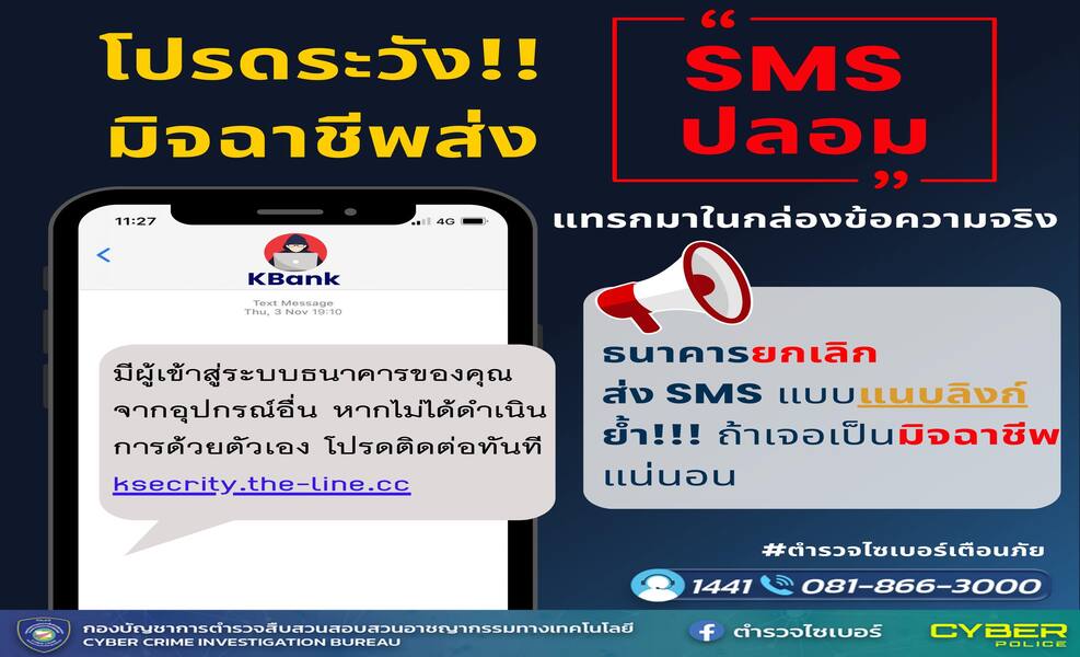 #ตำรวจไซเบอร์ #เตือนภัยออนไลน์ #SMSปลอม