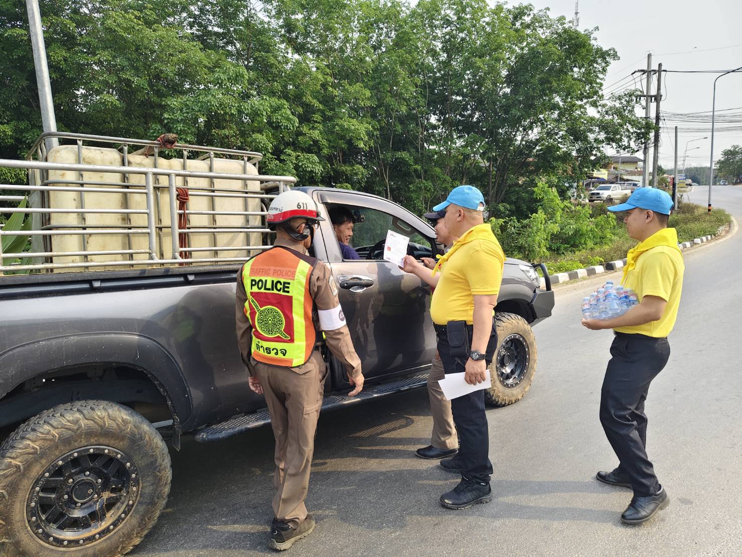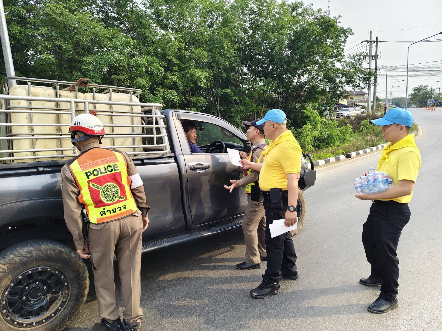 รณรงค์การขับขี่ปลอดภัย แจกน้ำดื่ม ให้กับประชาชนที่สัญจรบนท้องถนน