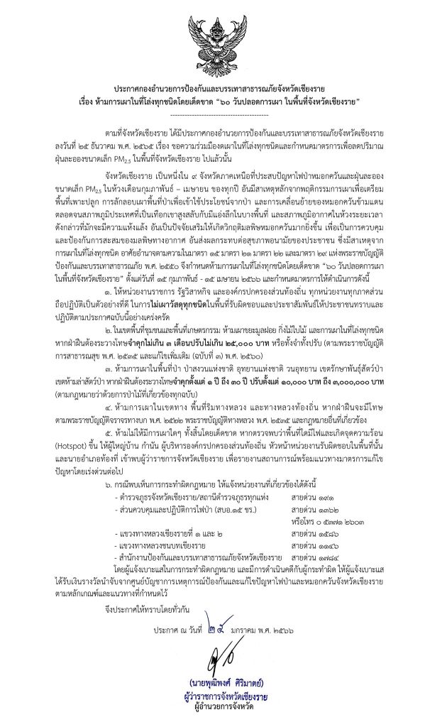 “ห้ามเผาในที่โล่ง” ตั้งแต่วันที่ 15 ก.พ.66 ถึง 15 เม.ย.66
