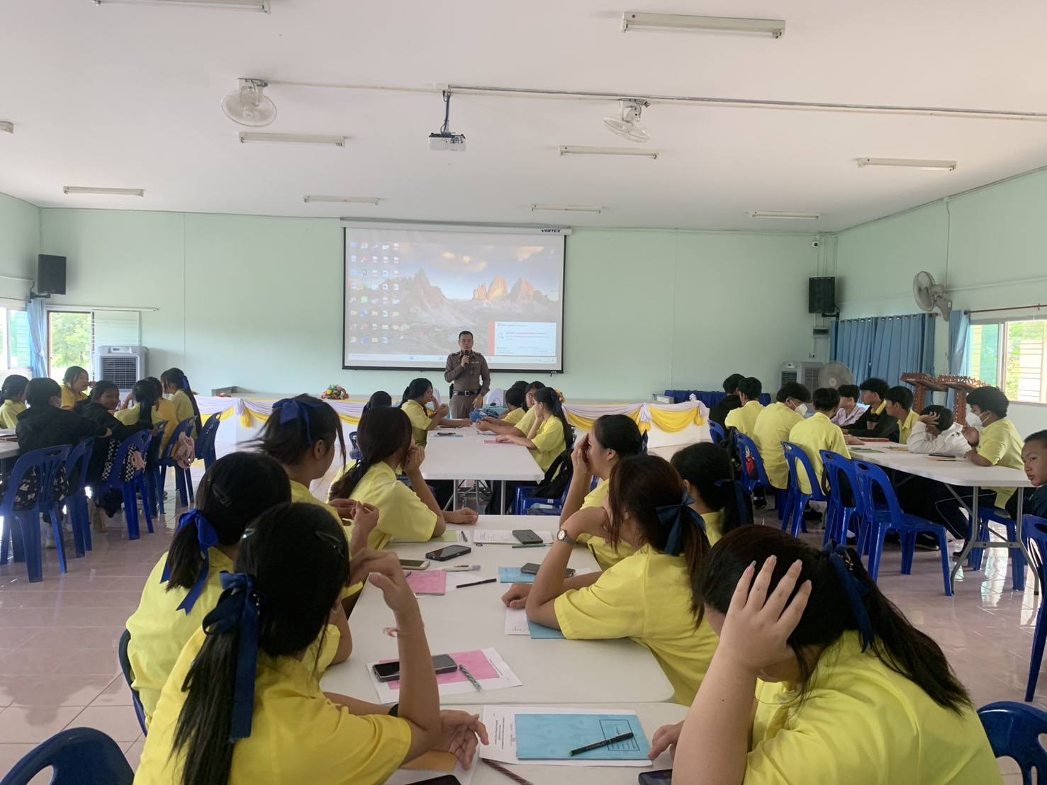 วันที่ 24 มิ.ย.68 เวลา 09.00น. – 11.30น. พ.ต.อ.อรรณพ เลิศสุวรรณ ผกก.สภ.ดอยหลวง, พ.ต.ท.ชาญณรงค์ วินัน รอง ผกก.ป.ฯ พ.ต.ต.วิชาญ ไชยวงค์ สวป.ฯ มอบหมายให้ ร.ต.อ.นาฤทธิ์ สมสวย รอง สวป.สภ.ดอยหลวง พร้อมด้วยจนท.ตร.ชุดชมส.สภ.ดอยหลวง ร่วมเป็นวิทยากรบรรยายความรู้เกี่ยวกับยาเสพติดและการป้องกัน แก่นักเรียนโรงเรียนดอยหลวงรัชมังคลาภิเษกฯ เพื่อให้ได้รู้จักวิธีการปฎิบัติตน นำความรู้ที่ได้รับไปปรับใช้ในชีวิตประจำวัน ณ. ห้องประชุม อบต.โชคชัย ต.โชคชัย อ.ดอยหลวง