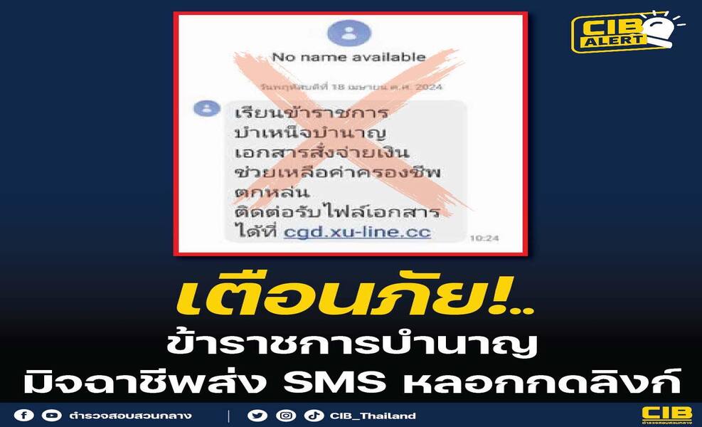 เตือนภัย!! ข้าราชการบำนาญ มิจฉาชีพส่ง SMS หลอกกดลิงก์